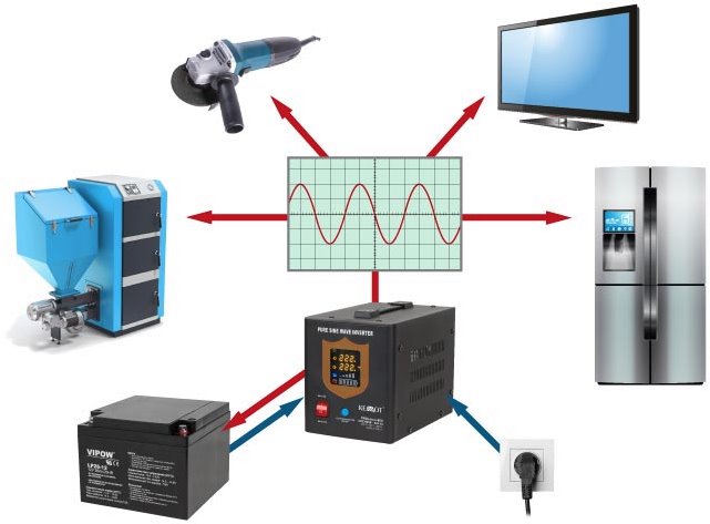 Pure sine wave backup power supply sinusPRO-800E Black designed to provide backup power in case of a 230V mains power failure. In the event of a power outage, the SinusPRO automatically switches to battery power mode within a fraction of a second and starts supplying power to the connected devices. Typical applications include backup power for circulation pumps in heating systems, emergency lighting, computer equipment, building security systems, etc.