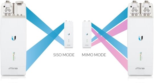AirFiber 11 може да работи в режим SISO (1 поляризация) или MIMO (2 поляризация), в зависимост от местните условия на употреба. За използване на режим SISO е необходимо да закупите отделно нисък или висок дуплексер (зависи от честотата, която искате да използвате). За използване на MIMO е необходимо да закупите 2 еднакви дуплексера.