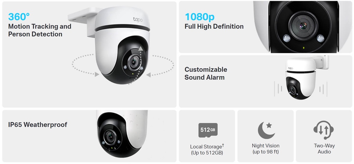 Това е автоматичен превод. Оригиналния текст може да видите тукTP-Link представя охранителната IP камера TC40, която е идеална за защита на вашия имот, градина или вила. Благодарение на висококачествените материали и повишената издръжливост IP65 , камерата издържа на тежки метеорологични условия или силен дъжд. Основният сензор с Full HD резолюция (1920 × 1080 px) предлага висококачествени изображения с усъвършенствано улавяне на детайлите и 360° хоризонтално зрително поле и 130° вертикално зрително поле . Общата видимост на камерата е 360° и 130°. Камерата включва IR сензори с нощно виждане с обхват до 30 метра. Той също така разполага с интелигентен PIR сензор , който, използвайки изкуствен интелект, може да различи хората от обичайните домашни любимци и други движещи се обекти.