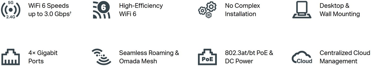 Точката за достъп разполага с четири 10/100/1000 Mbps LAN порта , като първият порт поддържа PoE IN, а вторият порт поддържа PoE OUT. Може да се захранва чрез 802.3af, но за да функционира правилно PoE OUT, устройството трябва да се захранва с 802.3at/bt. Устройството включва и един FXS RJ11 порт .