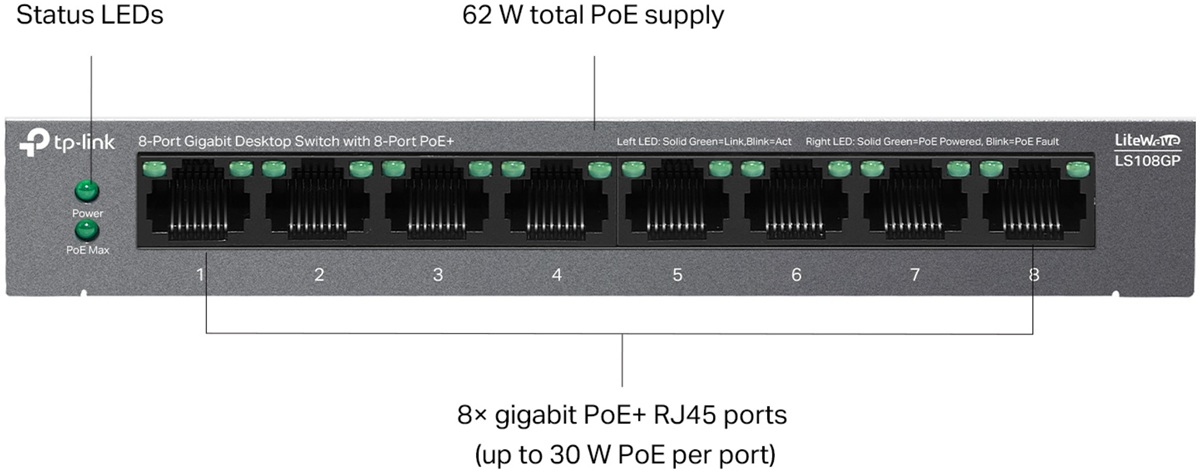 TP-Link LS108GP - 8-Port Gigabit PoE+ Switch