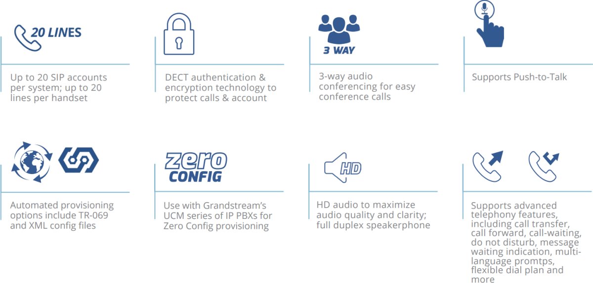 - Използвайте с IP PBXs от серията UCM на Grandstream за осигуряване с нулева конфигурация