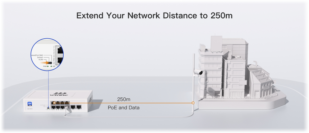Увеличете обхвата на PoE до 250 м (само за портове № 7 и 8)