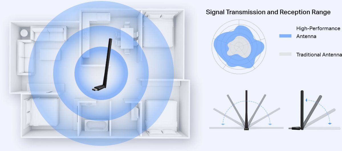 - По-голямо покритие – Завъртете и регулирайте многопосочната антена за по-мощен прием на сигнала