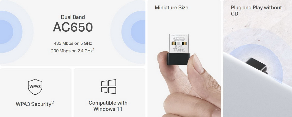 Това е автоматичен превод. Оригиналния текст може да видите тукМалко, надеждно USB устройство, което се свързва с WiFi и Bluetooth. Благодарение на размера си, то заема малко място и не е нужно постоянно да го изключвате от USB порта. С Bluetooth 5.0 можете да свържете и други устройства, като слушалки или клавиатури. Не е необходим инсталационен носител за инсталиране, защото благодарение на интегрирания драйвер, то ще работи след поставяне в USB порта. Wi-Fi Bluetooth USB адаптерът MA20NB е предназначен за операционни системи Windows 10 и Windows 11 (32/64bit).