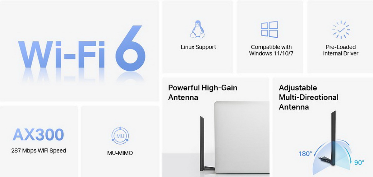 - Високоскоростен WiFi: Скорости до 287 Mbps, надгражда вашите устройства до по-високи AX WiFi скорости.