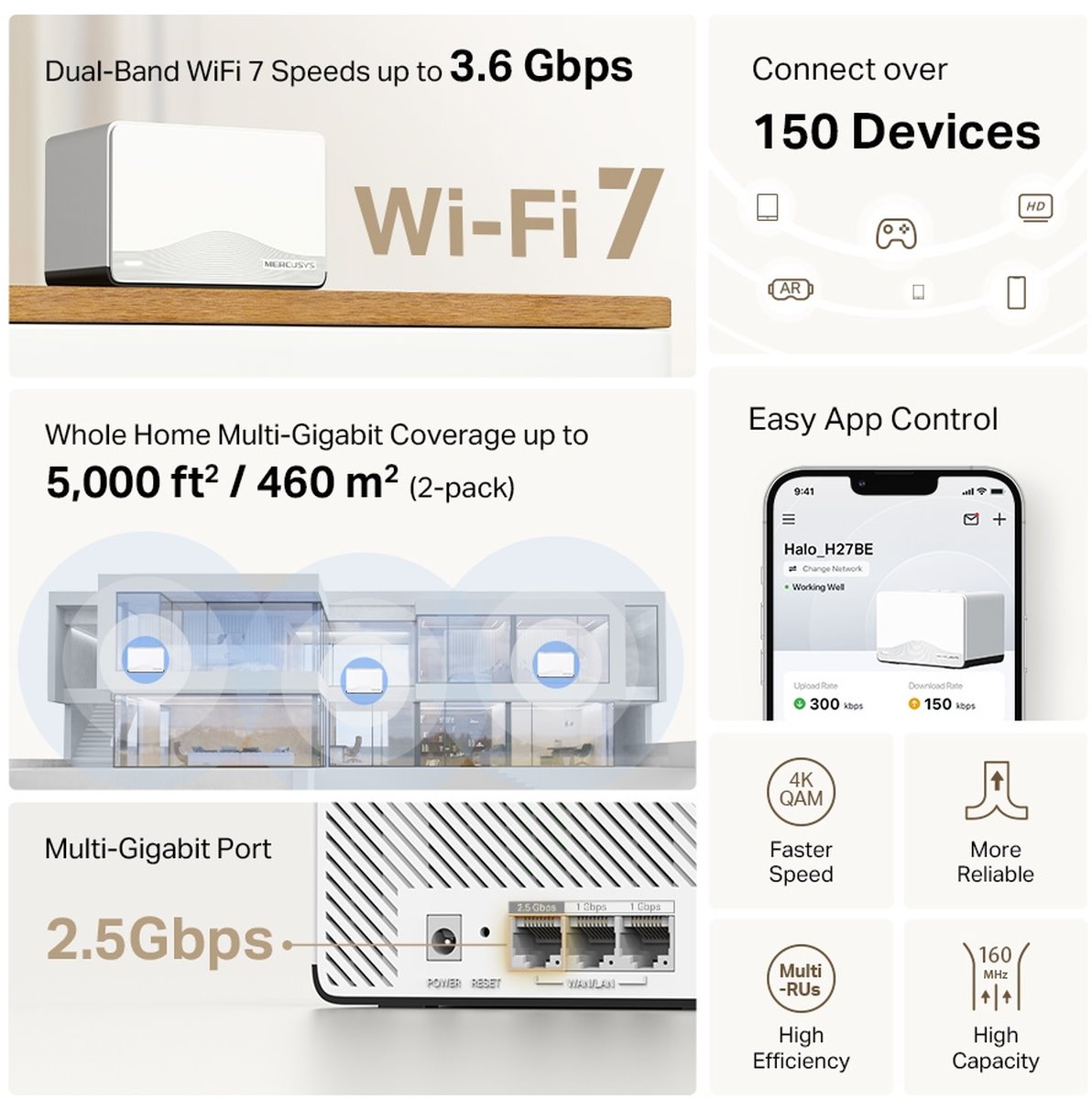MERCUSYS Halo H27BE(1-pack) Halo Mesh Wi-Fi 7 System