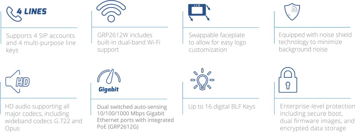 - GRP2612W includes built-in dual-band Wi-Fi support
