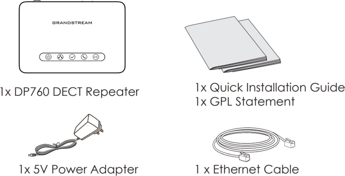 The DP760 is a powerful wideband DECT repeater (wireless relay station) that auto associates to Grandstream DECT base stations, offering extended mobility to business and residential users. The DP760 extends an additional range to give users the freedom to move around their home or work space. Up to 2 concurrent HD calls Extends an additional range of 300 meters outdoors and 50 meters indoors for added mobility Automatic or manual association to DP Series base stations for easy use Supports Plug-n-Play features like auto association, auto region detection and seamless call handover Automated provisioning options include XML config files Ethernet connection provides PoE features Package Content Repeater Unit, Universal Power Supply; Ethernet cable; Quick Start Guide, GPL statementDownload