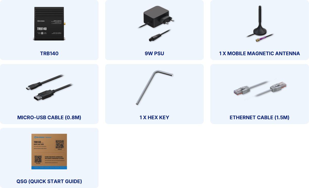 TRB140 LTE Ethernet Gateway is a small, lightweight and energy efficient IoT device equipped with mission-critical LTE capabilities, a RJ45 10/100/1000 Mbps port and a Linux environment offering a high degree of customization, designed to do IoT projects with ease.