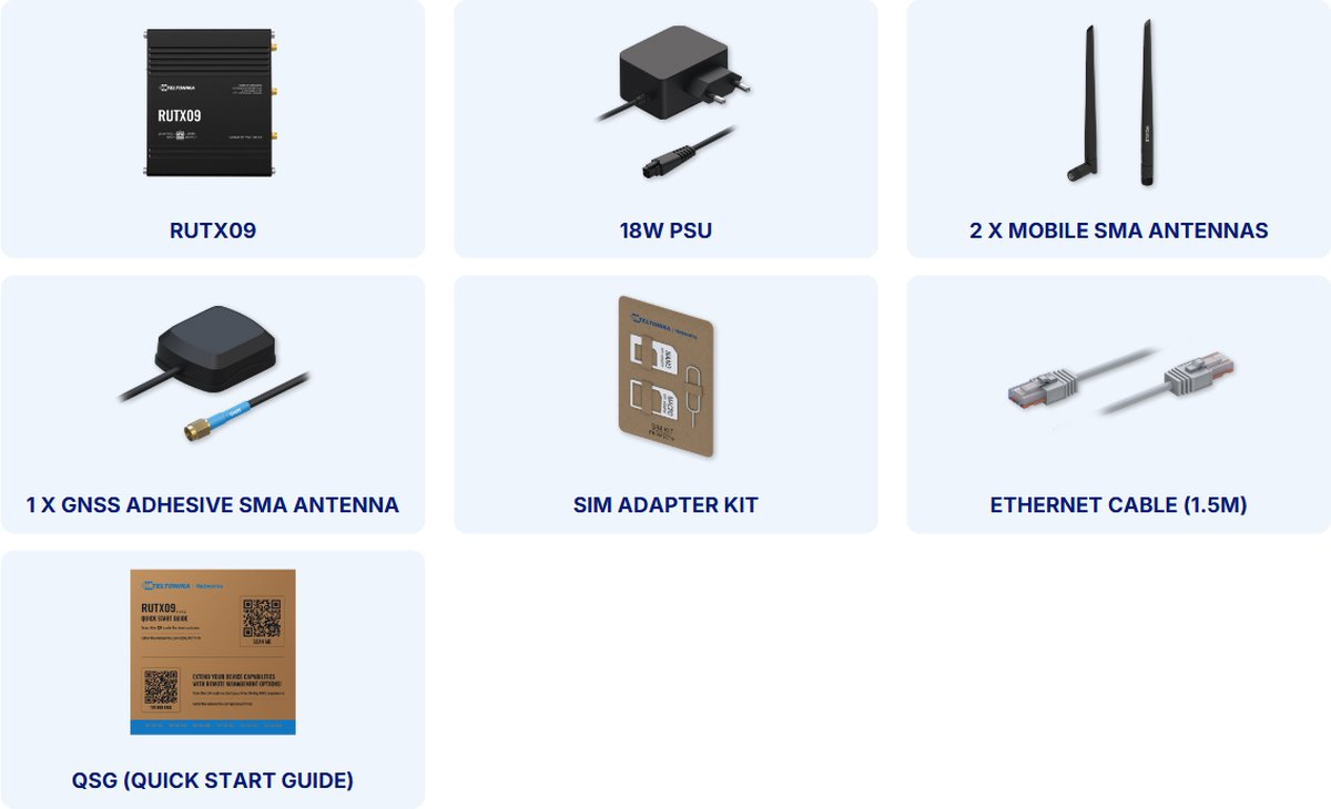 This powerful LTE router is designed as a Main/Backup Internet source where steady connection and high data throughput is required. Equipped with Dual-SIM and four Gigabit Ethernet ports, RUTX09 also has all advanced RutOS software and security features.
