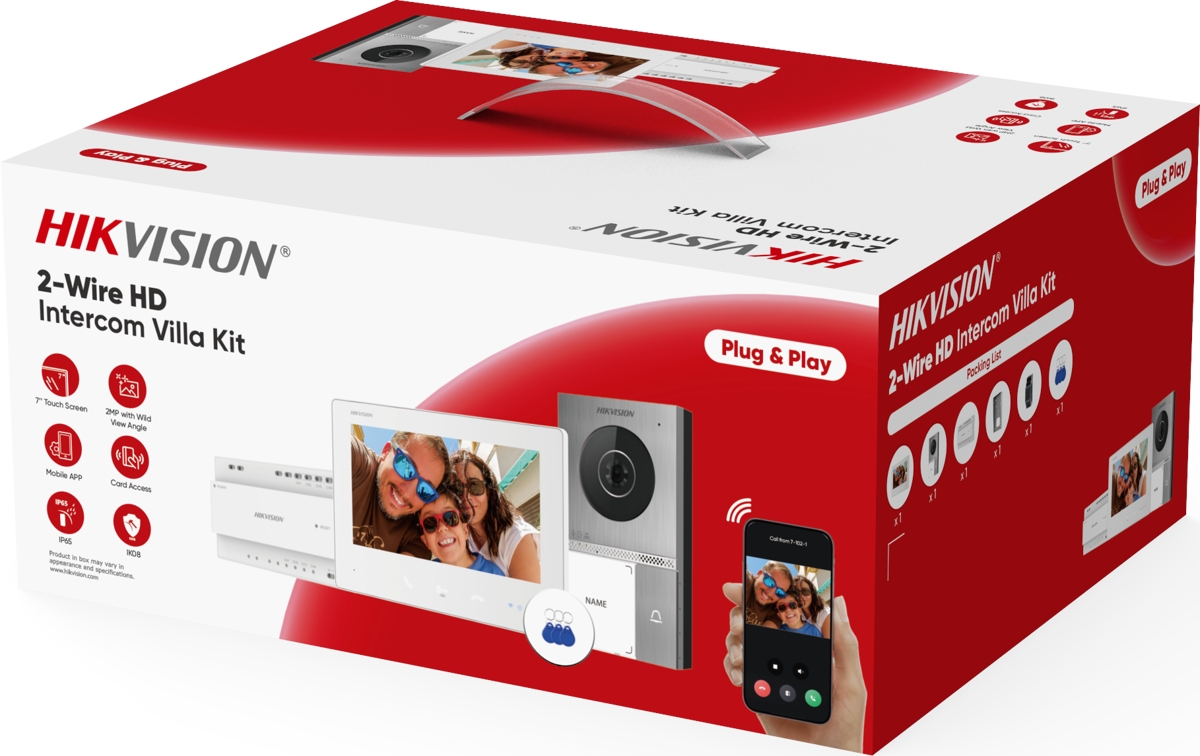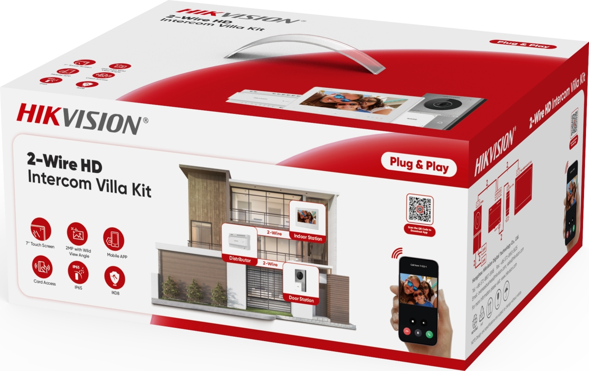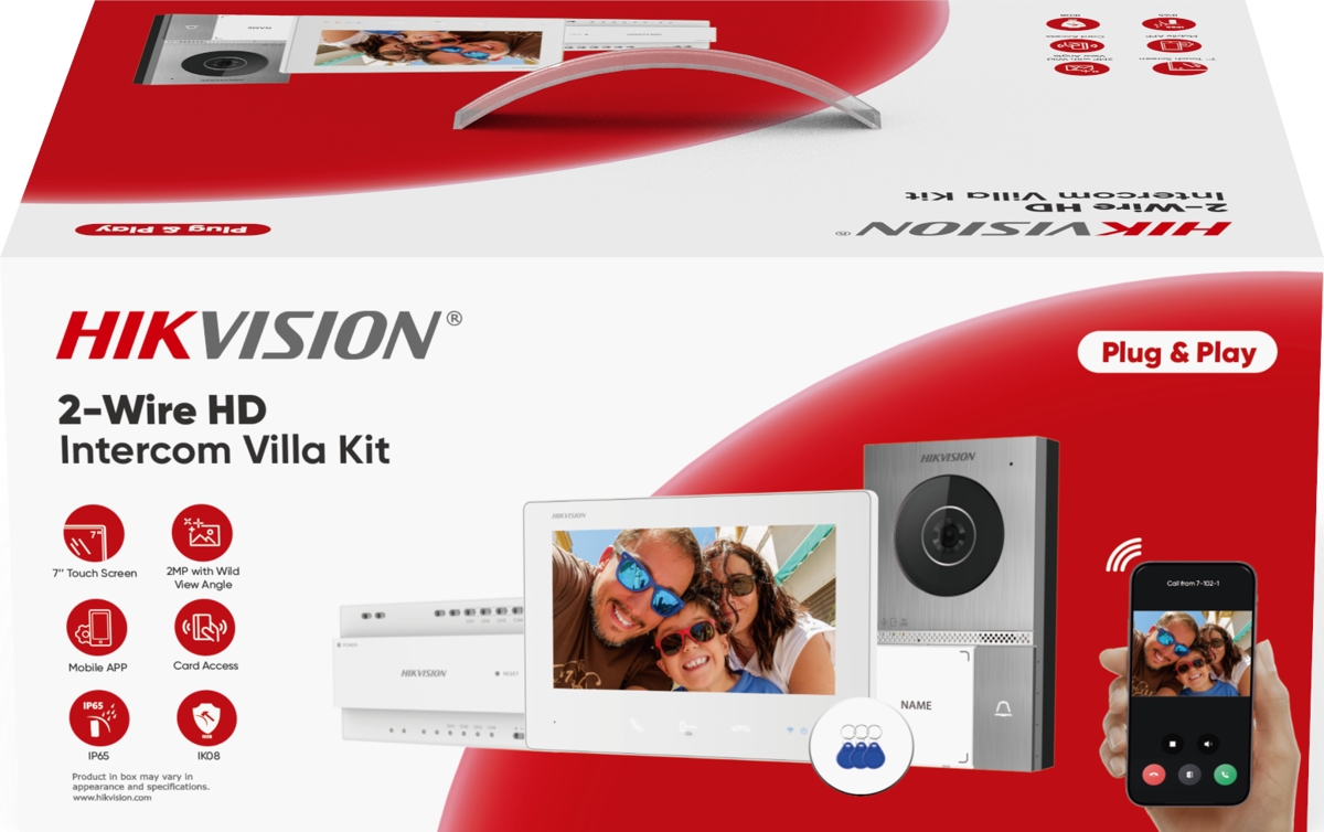 The DS-KIS705EY pre-configured video intercom kit is suitable for homes and small businesses. You can use existing 2-wire cabling to install the kit. Thanks to the Hik-Connect app, you can communicate with the door station and receive video calls anytime, anywhere.