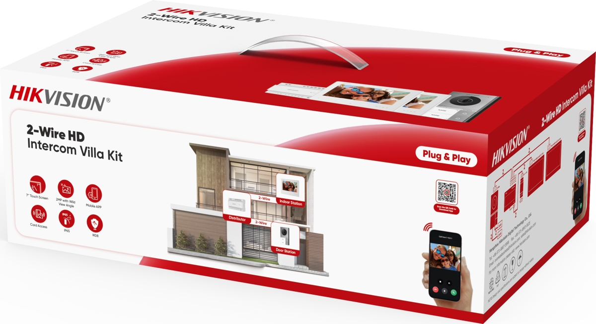 The DS-KIS705EY/2Monitors pre-configured video intercom kit is suitable for homes and small businesses. You can use existing 2-wire cabling to install the kit. Thanks to the Hik-Connect app, you can communicate with the door station and receive video calls anytime, anywhere.