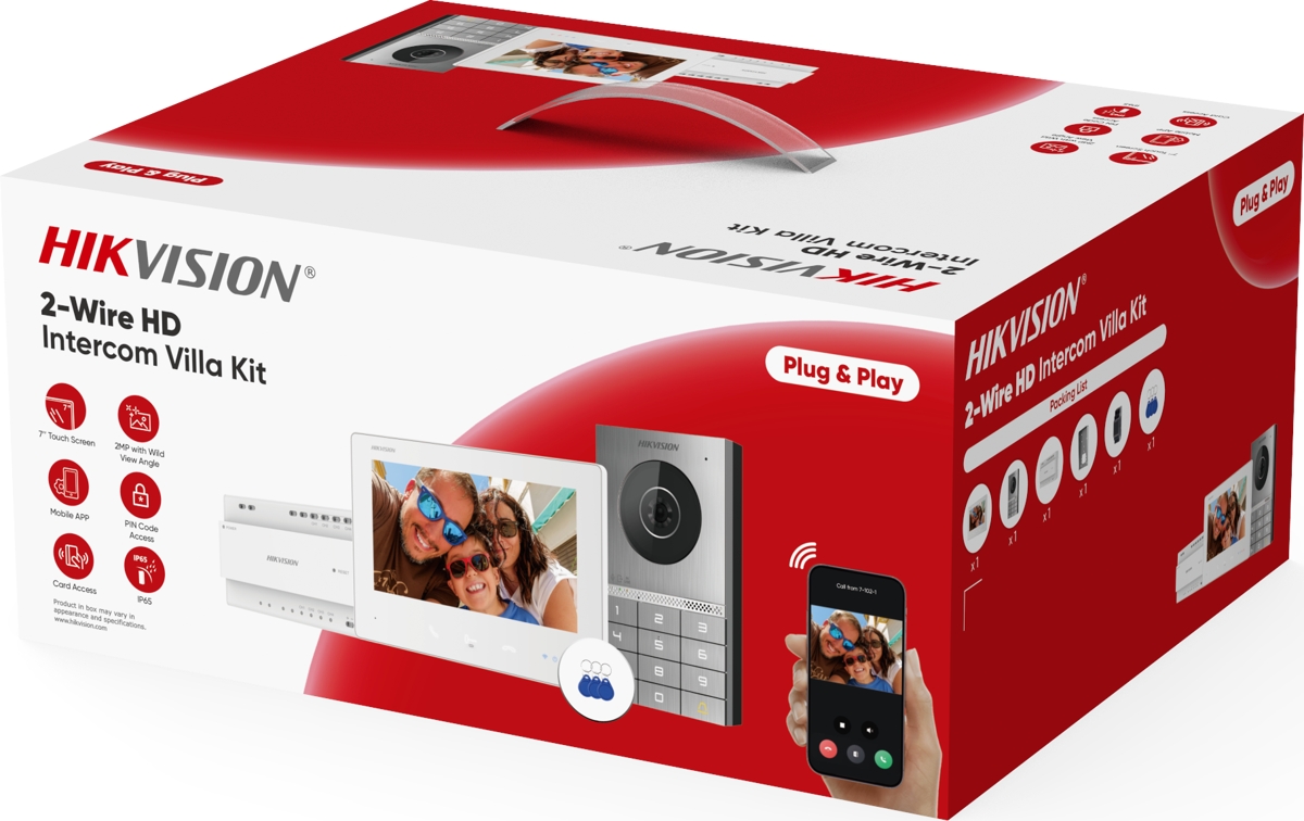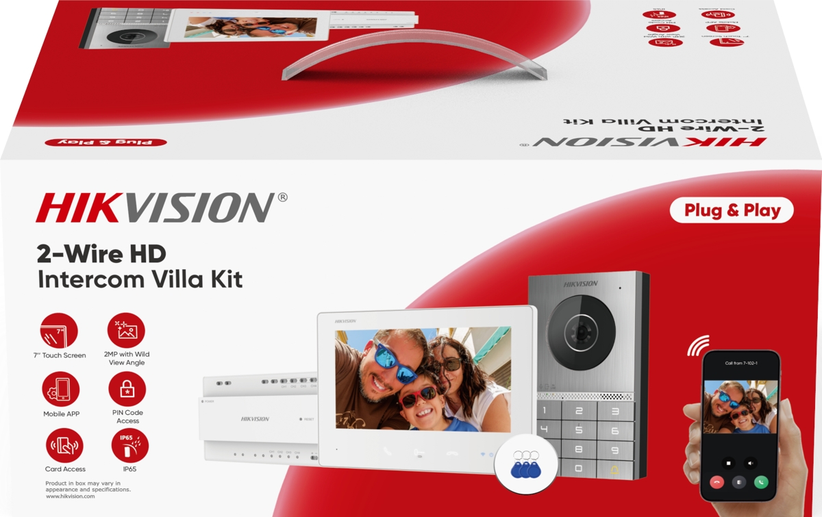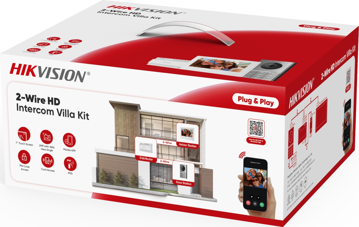 The DS-KIS706EY pre-configured video intercom kit is suitable for homes and small businesses. You can use existing 2-wire cabling to install the kit. Thanks to the Hik-Connect app, you can communicate with the door station and receive video calls anytime, anywhere.