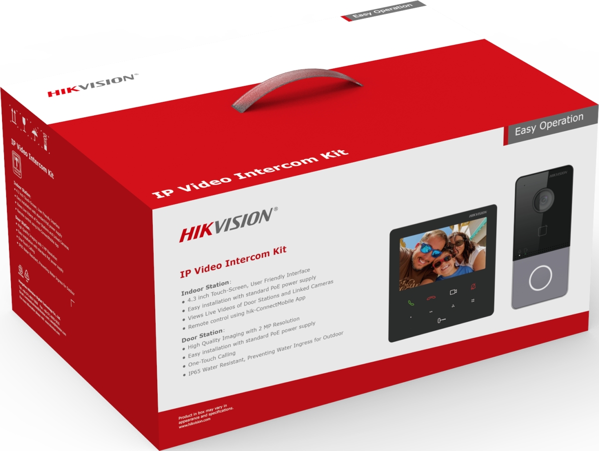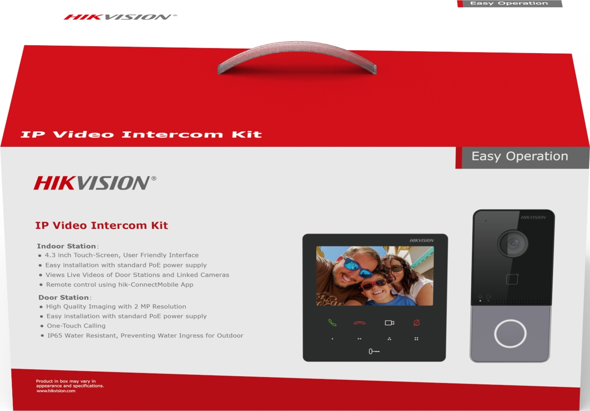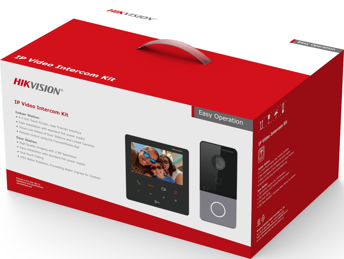 The DS-KIS606-P IP video intercom kit is suitable for homes and small businesses. Thanks to the Hik-Connect app, you can communicate with the door station and receive video calls anytime, anywhere.
