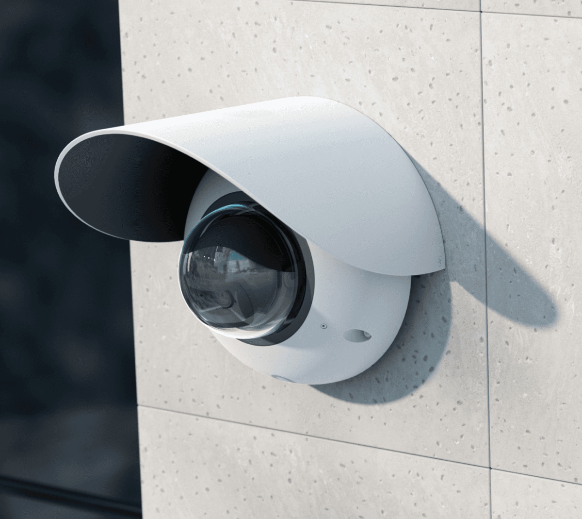 G6 Dome camera (UVC-G6-Dome) accessory for optimal image quality and protection from the elements when installed outdoors on a wall or pole. In white.
