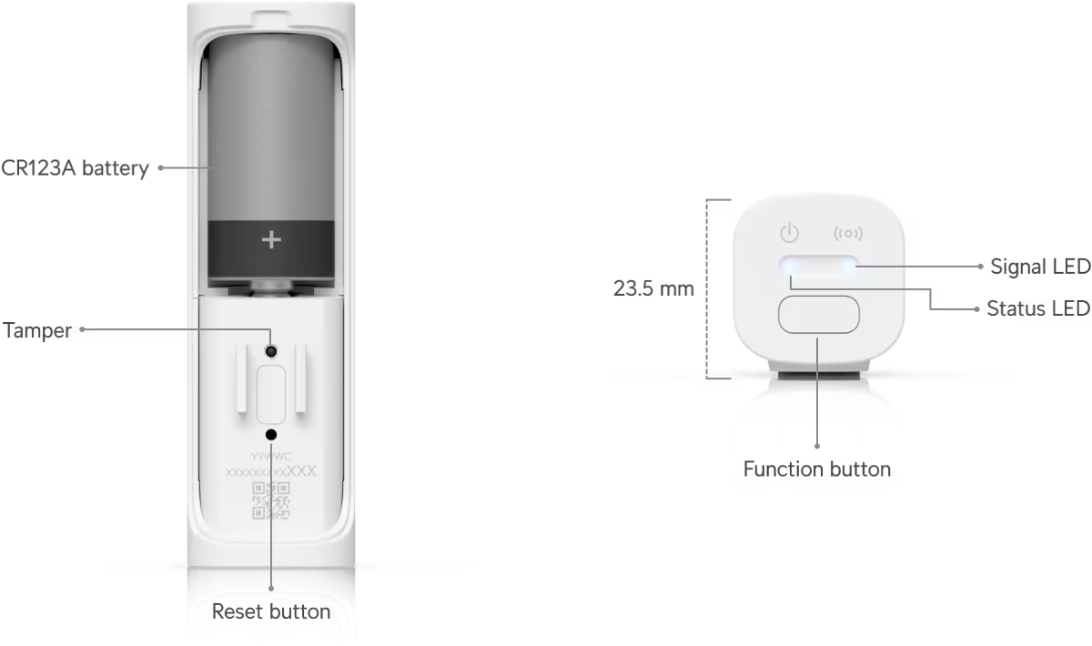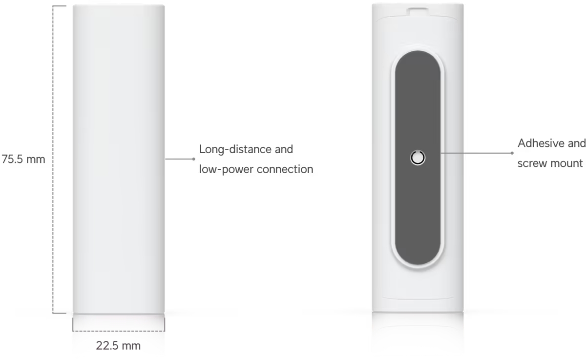 The Ubiquiti USL-Entry is a wireless UniFi Protect sensor designed to monitor the open/closed status of doors and windows. It communicates with the gateway using the proprietary SuperLink protocol with range of up to 2km (in open space). Both the sensor and the magnet can be easily attached using adhesive or screws to walls, doors or windows. The sensor is powered by a CR123A battery (included) with battery life of up to 6 years.