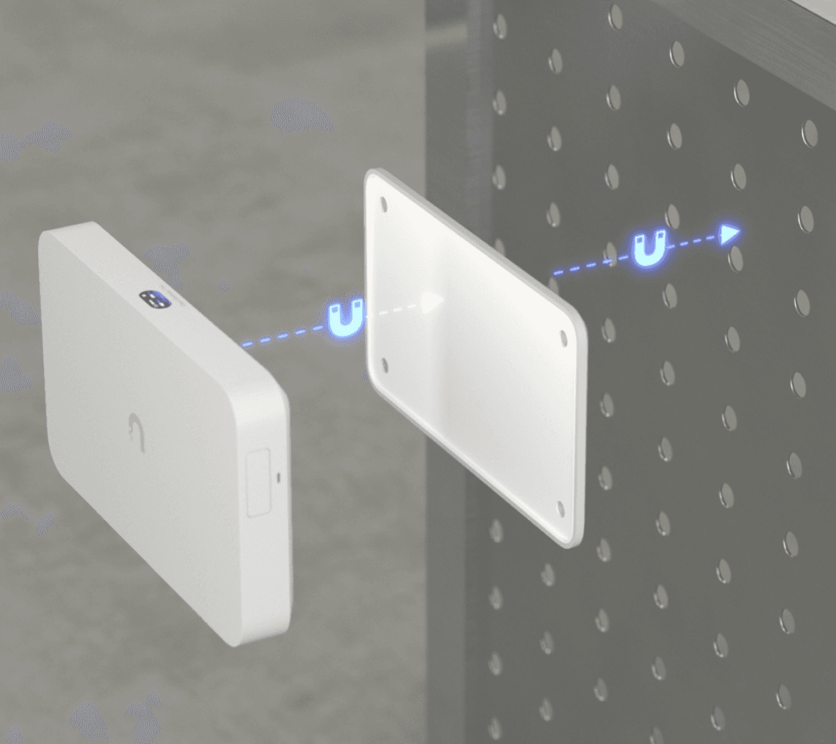 Sleek, magnetic wall mount for Cloud Gateway Fiber (UCG-Fiber) and Gateway Fiber (UXG-Fiber).