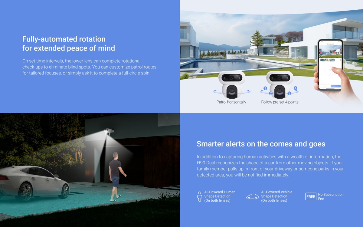 • 360° coverage - with auto-patrol and smart motion tracking, no movement goes unnoticed