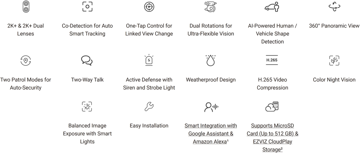 • Local and cloud storage - supports microSD cards up to 512 GB and EZVIZ CloudPlay storage (subscription required)