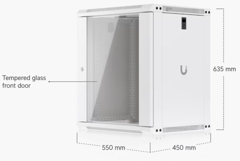 Ubiquiti 12U Rack Cabinet, Wall mount, 450mm, glass door