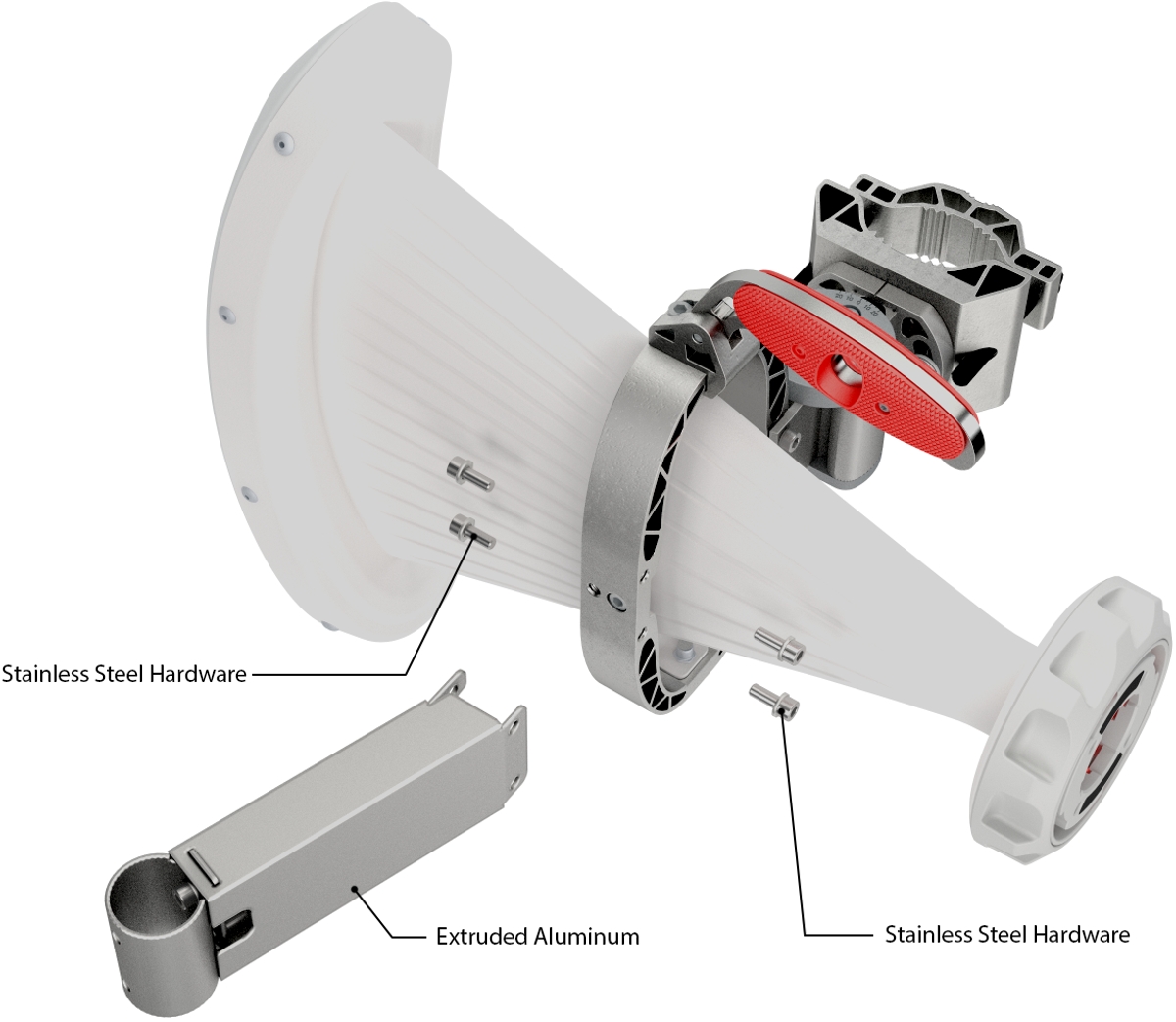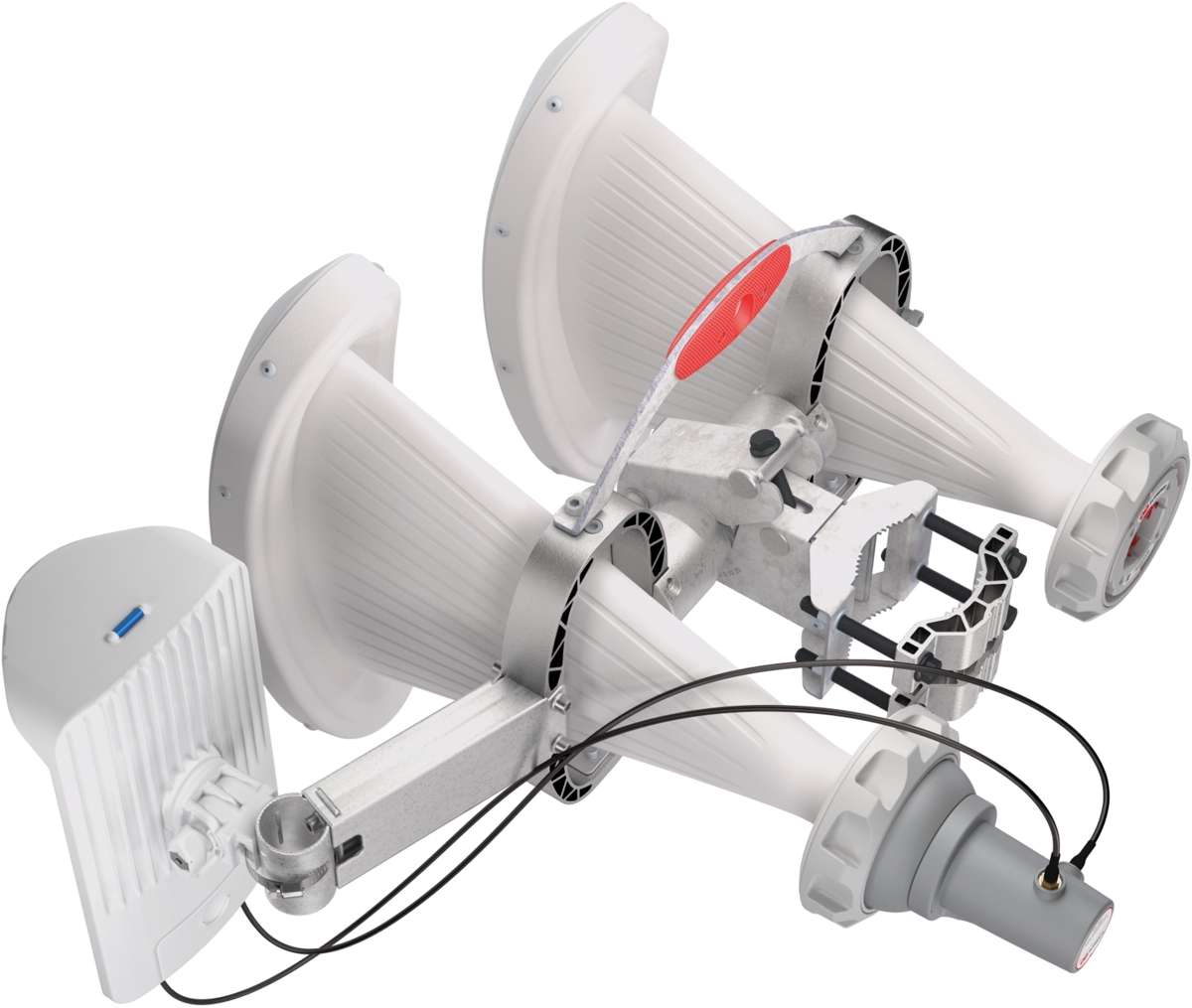 The BR-WG2 is compatible with any RF elements asymmetrical Horn antenna that uses the structural aluminum ring. It is also compatible with the latest 6GHz Wideband Horn antennas, older 5GHz AH-TP models and all asymmetrical 4x4 Horn antennas.