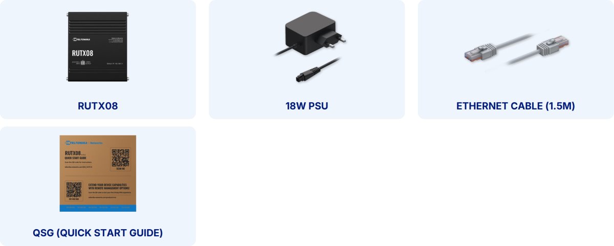 A powerful router based on Linux: LTE modem Teltonika RUTX08. A new generation router that, among other things, offers a gigabit Ethernet interface. It is a robust network solution that includes a VPN, a firewall and enough computing capacity to run custom-designed applications within the RutOS operating system (OpenWrt based on Linux OS)..