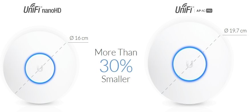 UAP-nanoHD е най-малката UniFi точка за достъп, налична на пазара. UAP nanoHD е с 30% по-малък от версията UAP AC Pro.
