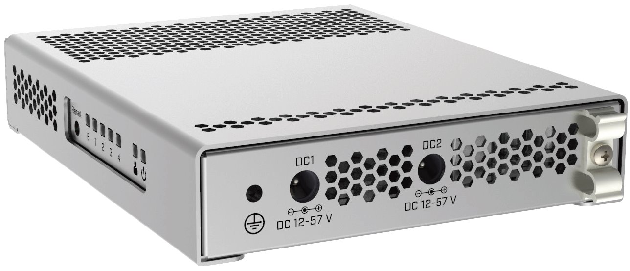 Това е автоматичен превод. Оригиналния текст може да видите тукCRS305 е компактен, но много мощен комутатор, включващ четири SFP+ порта, за до 10 Gbit на порт. Устройството има 1 Gbit меден Ethernet порт за достъп до управление и два DC жака за захранване. Устройството е много елегантен и компактен метален корпус без никакви вентилатори, за безшумна работа.