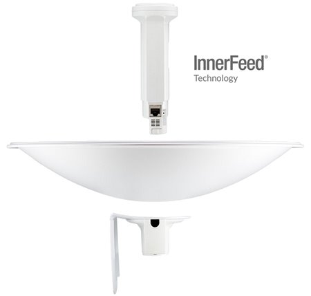Технологията InnerFeed ™ на Ubiquiti интегрира радиото във фийдхорна на антената, така че няма нужда от кабели за свързване на радиото към антената. Това подобрява производителността, защото елиминира кабелните загуби .