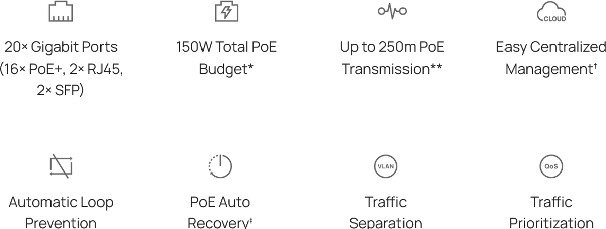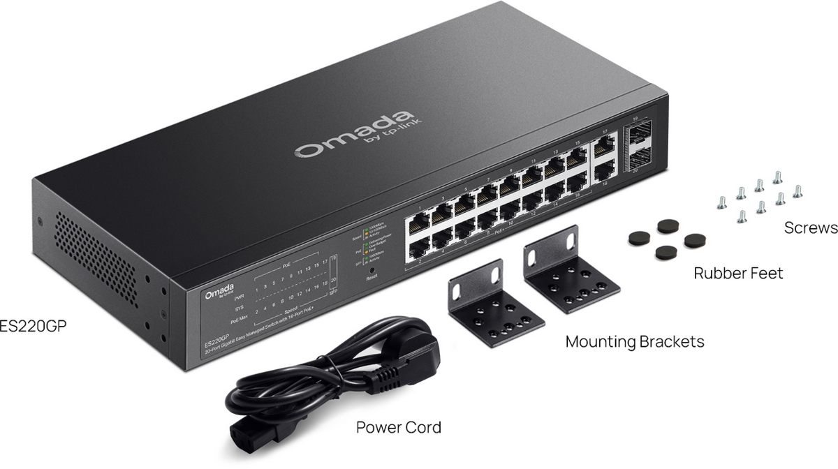 TP-Link ES220GP Omada 20-Port Gigabit Easy Managed Switch with 16-Port PoE+