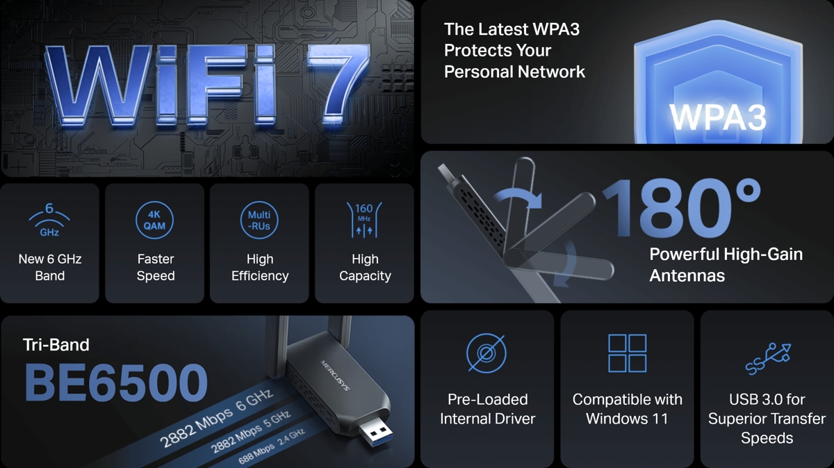 Mercusys MA37BEH Wi-Fi 7 High-Gain Wireless USB Adapter
